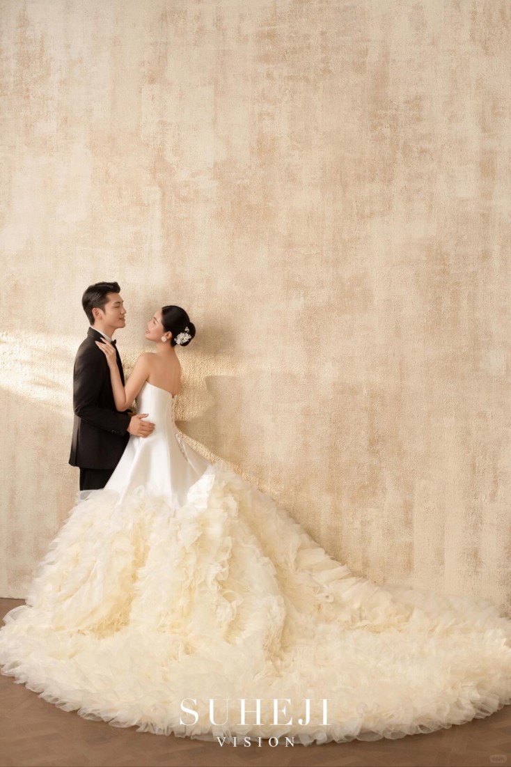 婚纱照的色彩搭配很和谐!和场景、服装完美适配,看起来特别舒服~