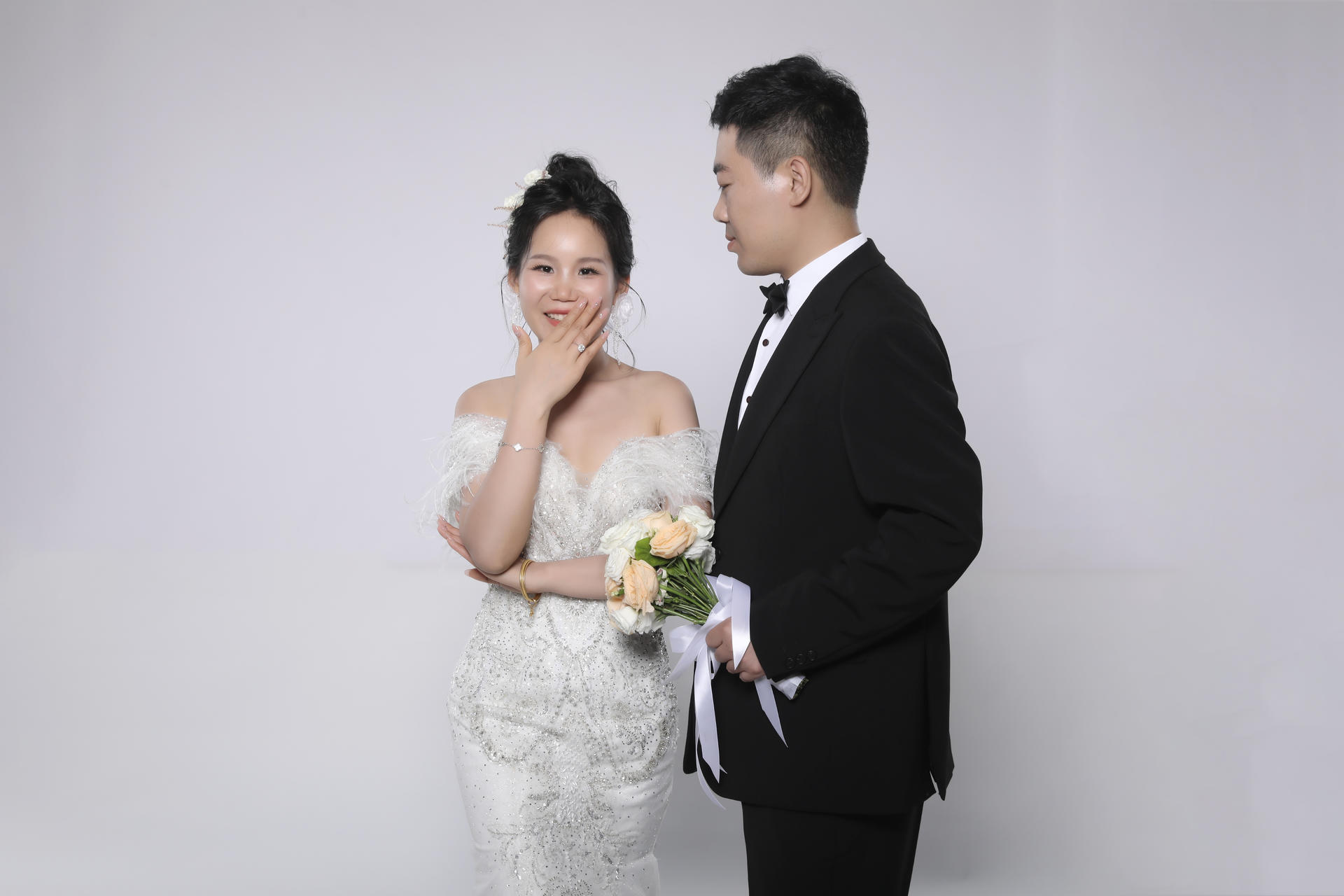 期待已久的婚纱照终于拍完了,非常开心,非常感谢各位老师。特别感谢店长亲自为我化妆盘发,化的妆干净,大方真的很喜欢,根据我的风格去搭配头饰头纱,精致到每根头发丝,真的超级nice!感谢摄影老师,和助理小姐姐,经验丰富,拍摄过程中也非常耐心,精细的指导每个动作,很有耐心帮助我们整理衣服细节,真的很感谢,总体就是超级超级超级满意,非常棒👍🏻给大家看看我们原图婚纱照,没精修都很喜欢😊