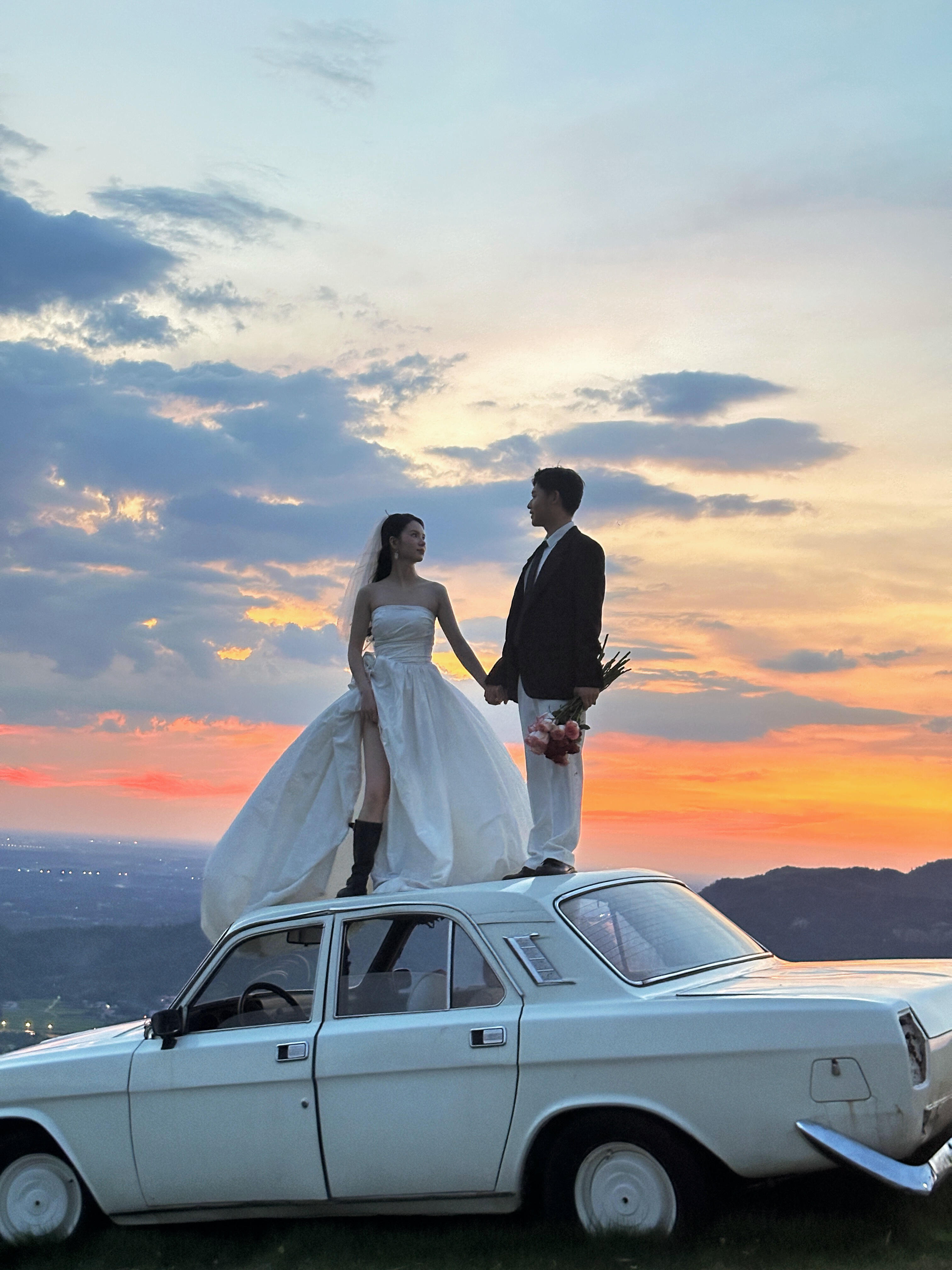 松弛感绝了,在山顶蓝调时刻拍到了人生婚纱照